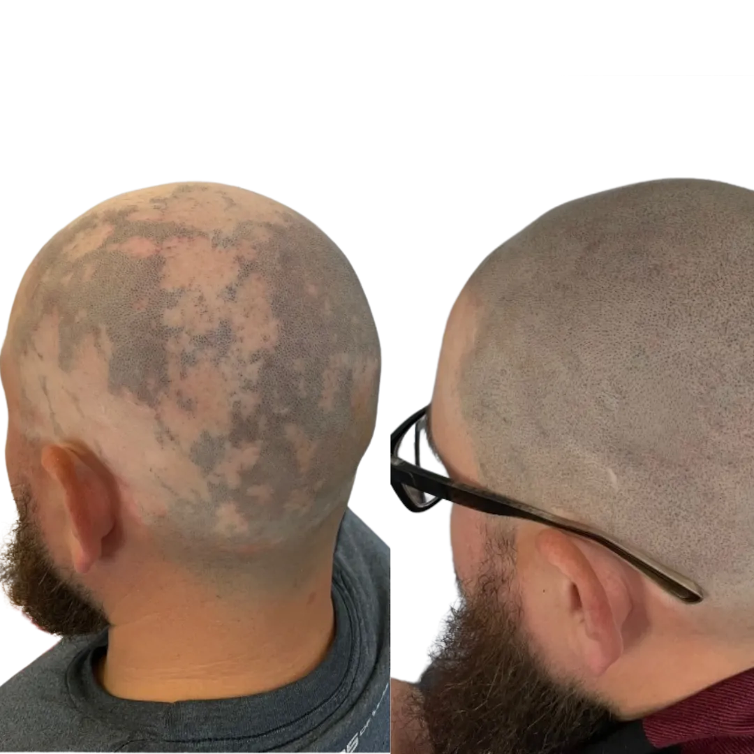 Of course! Some people call it SMP, others Scalp Micropigmentation, Hair Tattoo, Scalp Tattoo, or even Microblading of the scalp. Regardless of what you call it, we look at it as a collaborative effort between the artist and client. We will offer our professional advice on what hairline would look good on you but ultimately the choice is yours!